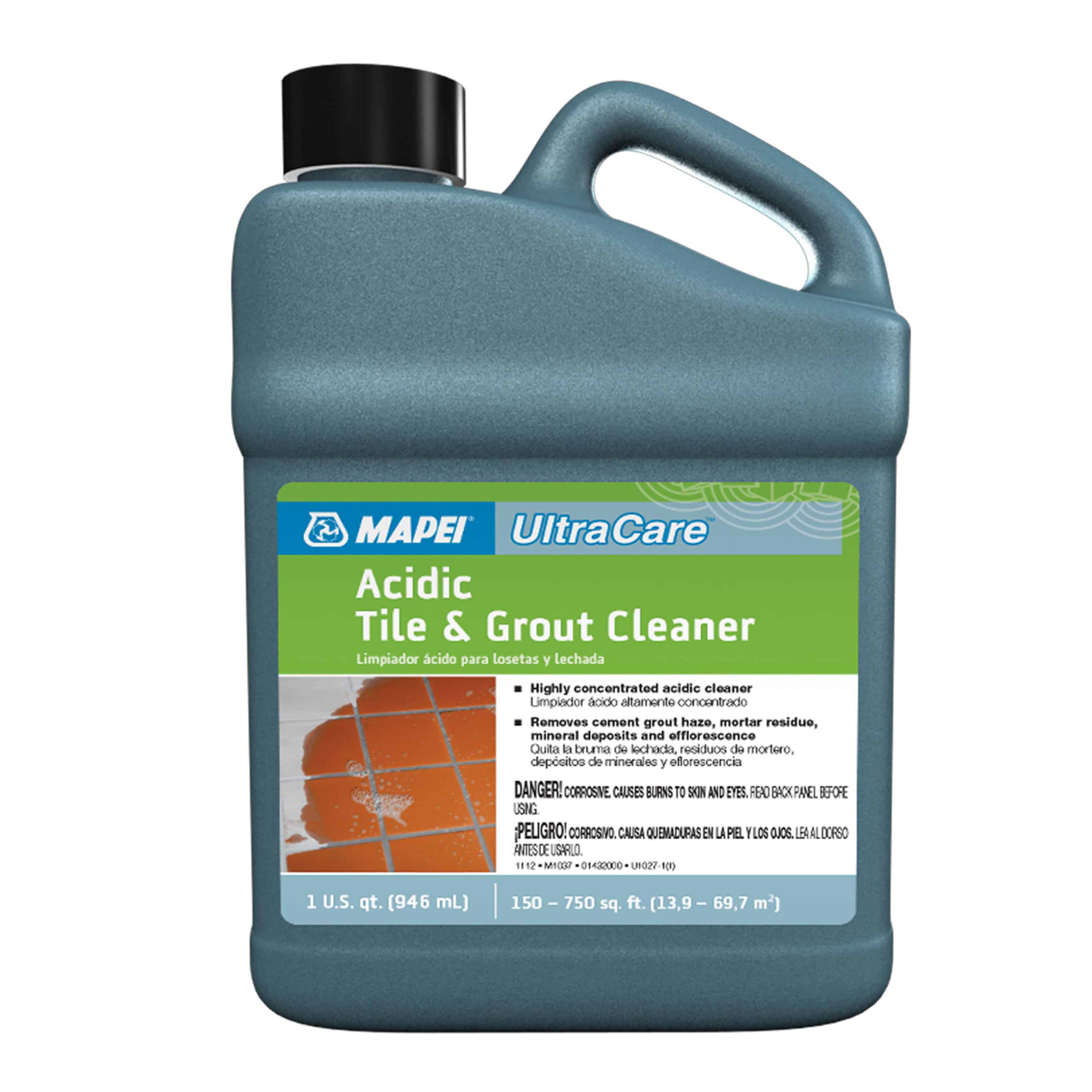 UltraCare Acidic Tile & Grout Cleaner is a highly concentrated acidic cleaner formulated to remove cement grout haze, mortar residue, mineral deposits, rust stains and efflorescence from tile, concrete and masonry surfaces. It is also effective for removing hard-water stains, lime deposits and soap scum.